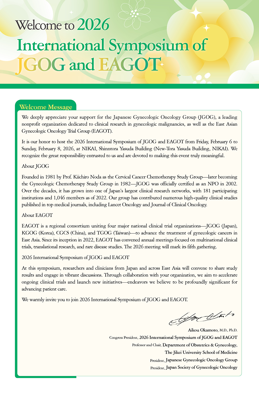Welcome to the 2026 JGOG–EAGOT International Symposium, to be held in Tokyo this February